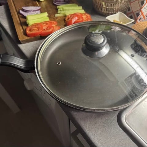 Tefal paistinpannu, jossa valkoinen sisäpinta ja keskellä lämpöä ilmaiseva punainen Thermo-Spot -merkki. Hyvä, käytetty kunto. Halkaisija 26 cm. Itse olen käyttänyt keraamisella liedellä.