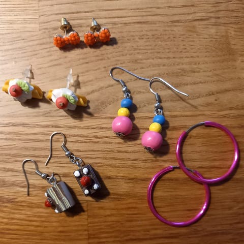 Naisten korusetti. Useita erilaisia koruja, kuten nappikorvakoruja, rengaskorvakoruja ja rannekoruja. Sopii naisille arki- ja juhlakäyttööm. Ei ole lukkoja. Osa on parempi kuntoisia osa vähän kuluneenpia. Paketissa tulee koruja. Hius donitseja, kynnet tarvikkeineen (ei liimaa) 4 puhelimen kuorta I phone 13 ja lisäksi vielä yksi pienehkö hiusklipsi.