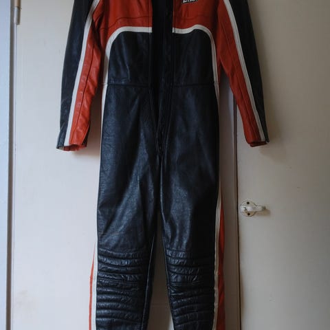 Erittäin hyväkuntoinen naisten vanha 2-osainen nahkapuku. Ei ole kulunut ja nahka on pehmeää ja tosi siisti kaikin puolin. Ikää varmaan on mutta kunto on erittäin hyvä. Takki 38 ja housut 40 kokoa. Kaksi vetoketjullista povitaskua ja kaksi vetoketjullista taskua housuissa. Kuvan henkilö 166/66. Varsinaisia suojia ei ole mutta toppaukset on. Takin ja housut saa vetoketjulla kiinni toisiinsa. Vetoketjut lahkeissa ja hihoissa. Voin postittaa pk. vastaan. Maksu miel mobilepay.