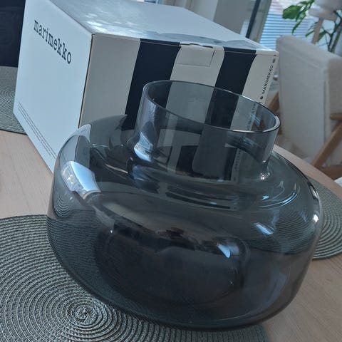 Käyttämätön Marimekon Urna-maljakko. Otettu ainoastaan kuvauksen ajaksi laatikosta ulos. Väri kirkas. Laatikko tulee mukaan.