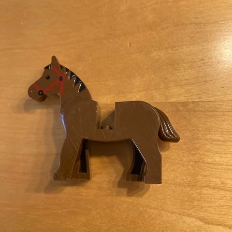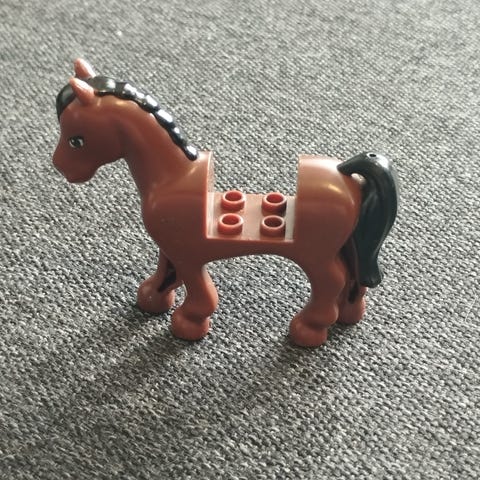 Tässä on hevos Lego setti. Tähän kuuluu kaksi ukkelia, Hevonen ja auto sekä hevoskärry. Ei käytön jälkiä!