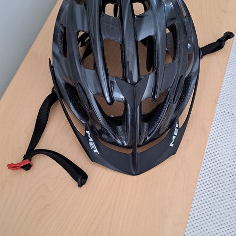 MET pyöräilykypärä, koko Medium. Kypärässä ilmanvaihtoaukot ja säädettävät leukahihnat pikasoljella. Ehjä, ei kolhittu.