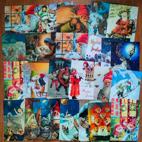 Itsetehtyjä taitettuja joulukortteja , ei kirjekuoria, mahtuvat C6 kuoriin.