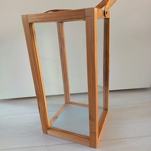 Tyylikäs lyhty nyörillä, korkeus 40 cm +4 cm (pikku yläosa), leveys ja syvyys 15 cm. Helppo aukaista/sulkea. Vain haku.