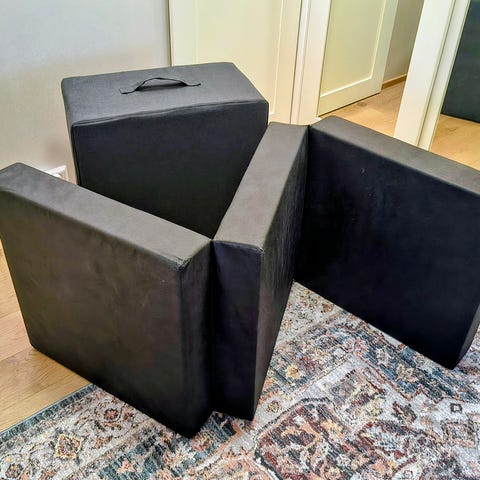 Sopii hyvin vieraskäyttöön esim lapselle tai hätätilassa myös aikuiselle. Patjan korkeus avattuna nukkumiseen 13cm ja pituus n. 198cm.