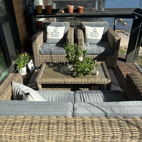 Myydään siisti polyrottinkinen kahden hengen puutarhasohva tummanharmaana. Soveltuu ulkokäyttöön esimerkiksi parvekkeelle, terassille tai puutarhaan. Sohvassa on käsinojat molemmin puolin ja selkänoja koko leveydeltä. Runkomateriaali on muovipohjaista polyrottinkia, joka kestää säätä paremmin kuin luonnonrottinki ja on helppo puhdistaa. Istuintyyny ei sisälly kuvaan näkyvänä, joten mahdollinen pehmuste voidaan valita erikseen omien tarpeiden mukaan. Myydään muuton takia. Vain nouto.