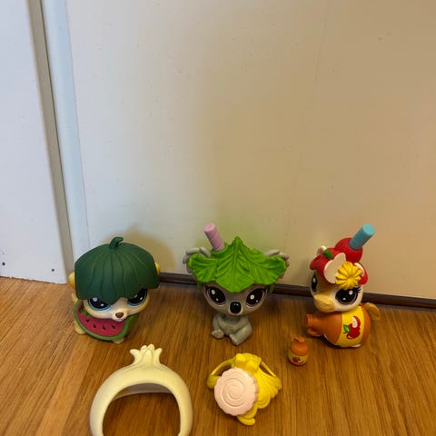 Littlest Pet Shop figuurit, monivärinen setti. Kokoelmassa useita erikokoisia eläinhahmoja, joista osa on glitter- tai helmiäispintaisia. Mukana muun muassa koira-, kissa- ja muiden eläinten näköisiä hahmoja sekä pienempiä pentuhahmoja. Muovisia lelufiguureja, jotka sopivat roolileikkeihin ja kokoelman täydentämiseen.