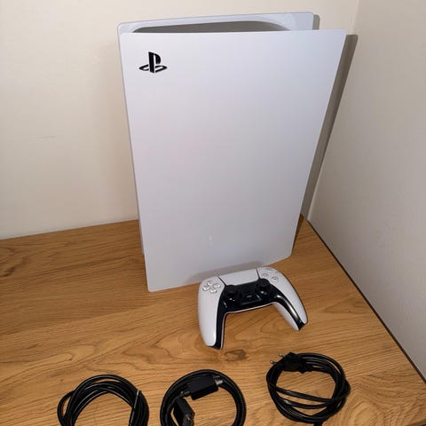 Mukaan tulee Virtajohto ja usb-c latauskaapeli. Lisähinnasta (20) saa valkoisen Ps5 ohjaimen mukaan.