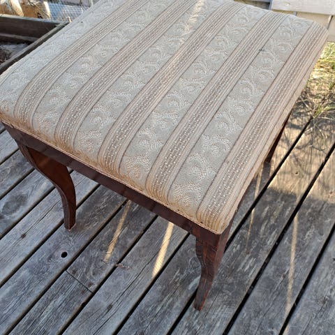 Myydään siisti ja ajattoman tyylikäs harmaa rahi. Pehmeä, napitettu istuinosa tuo sisustukseen eleganttia ilmettä ja tekee rahista mukavan istua tai käyttää jalkojen lepuuttamiseen.