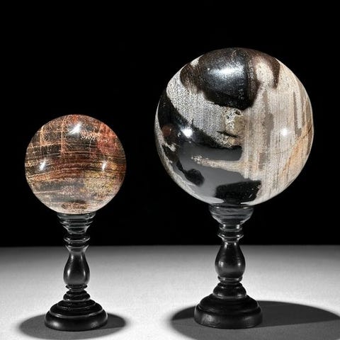Ihastuttava pari petrifioidusta puusta – sydämenmuotoiset kappaleet ja pallo