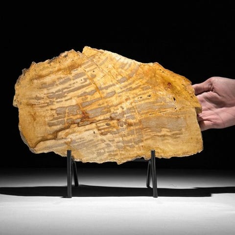 Upea pari kiillotettua kivipuolison petrifioitun puun sydänmuotoista sekä pallonmuotoista esinettä räätälöidyillä telineillä.Petrifioitu puu on mineralsitömin puun pala, joka syntyi kun puut kaatuivat ja peittyivät maaperän tai hiekan kerroksen alle. Usein luonnononnettomuuden seurauksena. Petrifioidussa puussa näette värin, joka riippuu maaperän tai hiekan mineraaleista. Jokainen mineraali luo oman värinsä. Prosessi nimeltä ”petrifikaatio” varmistaa, että kaikki puun ominaisuudet, kuten tauot, kuori ja vuosirenkaat, säilyvät. Mahdollisesti mätänevasta prosessista menneisyydessä voi syntyä upeita kiteisrakenteita, usein useammassa värissä.LÄNSIA KOKOAIKSIIN SISÄLTÄEN TUKI# Sydänmalli : Korkeus : 13,5 cm Leveys : 11,5 cm# Pallo : Korkeus : 14,5 cm Halkaisija : 7 cmVÄLIAIKAISET TIEDOITUKSET:- Huomaa, että nämä kuvat on otettu pimeässä studiosta, värit voivat vaihdella ympäristön mukaan.- Yksi tai useampi kuva esittää tyyliteltyä vastaavaa tuotetta. Tarkat tiedot myynnissä olevasta tuotteesta löytyvät muista kuvista. Mitään tetyistä kuvassa olevan tyylitellyn tuotteen osia ei sisälly myyntiin.- PAINO, JOKA MAINITAAN, SISÄLTÄÄ PAKKAUSMATERIAALIN.LÄHETYS- Tuote lähetetään Track & Trace -koodilla DHL Parcelin, DPD:n tai PostNin kautta. Seurantatiedot päivitetään Catawiki-huutokaupan kohteeseen, kun paketti on jättölaatikossa.- Tarkista säännöllisesti, jotta pakettisi ei palaudu meille; tällöin ostaja on vastuussa toisen lähetyksen kustannuksista.- Seuranta Espanjaan ja Portugaliin käyttämällä tätä linkkiä ja lisäämällä Catawiki -kohteen seurantanumerohttps://clientesparcel.dhl.es/LiveTracking/Home- EMME YHDISTÄ LÄHETYSTÄ!!!- Jos sinulla on kysyttävää paketistasi, ota yhteyttä Catawiki-viestipalvelun kautta. Pyrimme vastaamaan kolmen työpäivän kuluessa.