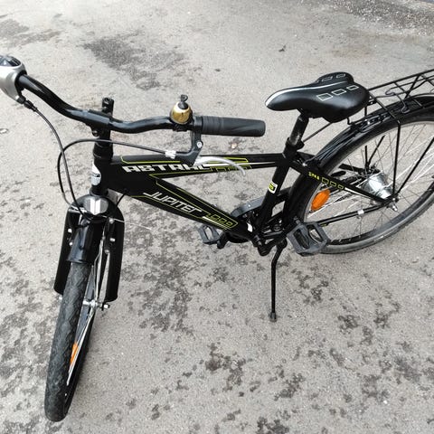 Pientä käytönjälkeä muun muassa penkissä pieni reikä ja vasemman puoleinen poljin haljennut