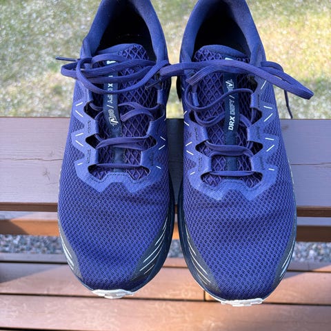 Vedenpitävä Gore-Tex -kalvo. Päällinen tekstiiliä ja synteettistä materiaalia, ulkopohja kumia. Väri tummansininen vihreillä yksityiskohdilla. Soveltuu juoksuun ja ulkoiluun vaihtelevissa olosuhteissa.