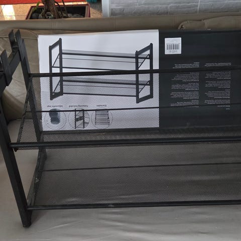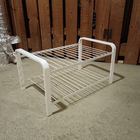 Myynnissä kenkäteline, kohtalainen kunto, mutta kunnostettavissa. Mitat l.100cm s.36cm k.50cm. Nouto Pohjois-nikinmäki, Vantaa