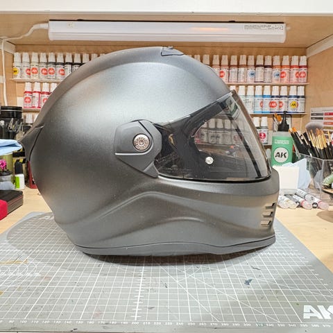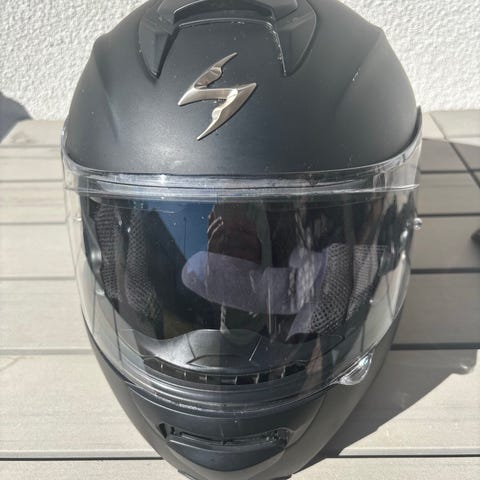 X-lite X-402 -kypärä ja mustat ajovarusteet. Kypärä on umpimallinen visiirillä. Mukana mustat ajohousut ja -takki sekä mustat ajosaappaat. Varusteet soveltuvat moottoripyöräilyyn ja muuhun moottorikäyttöiseen ajoon. Tarkemmat koot ja materiaalit eivät käy ilmi kuvista.