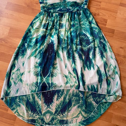Sifonki helman reunassa joka näkyy. Pysyy hyvin päällä. Polvipituinen.