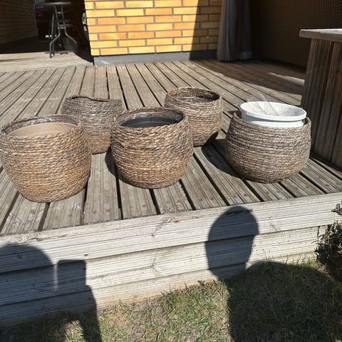 Kauniit ja hyväkuntoiset kukkaruukut sekä aluslautasia. Korkeimman ruukun korkeus 15cm ja halkaisija 14cm. Kerron mielellään myös muiden ruukkujen kokoja.