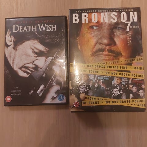 Charles Bronson Collection DVD-elokuvasetti. Pakkaus sisältää useita Charles Bronsonin tähdittämiä toiminta- ja rikoselokuvia, kuten Murphy’s Law, Kinjite: Forbidden Subjects, Messenger of Death ja 10 to Midnight. Formaatti on DVD, ja kotelo on monilevykokoelma. Ikäraja on 18, joten kokoelma on tarkoitettu aikuisille katsojille. Tekstitykset löytyy suomeksi (poislukien Kinjite) ja ääniraidat ovat julkaisukohtaisia, tarkemmat tiedot löytyvät kotelon takakannesta.