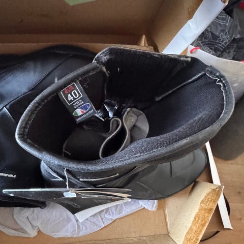 Yoko moottoripyörä ajosaappaat, koko 43. Todella lämpimät ja vedenpitävät, ei ole montaa reissua heitetty. Eivät sovi omaan tyyliin ja jääneet ylimääräiseksi.
