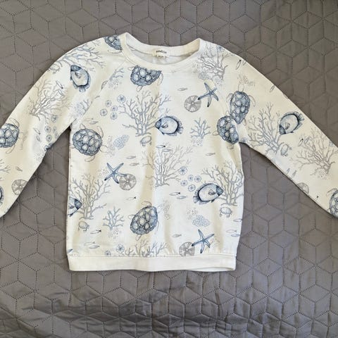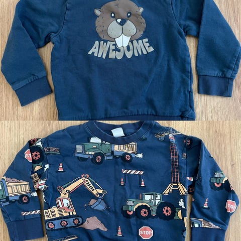 • One grey sweatshirt (name it), fits smaller, closer to 98/104