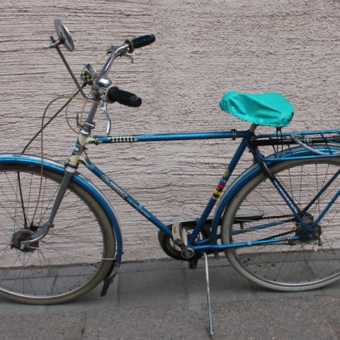 Patinoitunut näyttävästi. Kaikki toimii, uudet ulko- ja sisäkumit, polkimet ja ketjut. Vanha lukko, johon yksi "avain". Huoltolokerossa vanha pumppu, jonka toimivuutta en huomannut kokeilla.