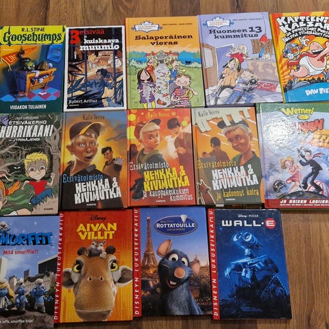 Kuvanmukaiset suht hyväkuntoiset tai hyväkuntoiset lasten ja nuorten kirjat ja pokkarit, kysy lisää