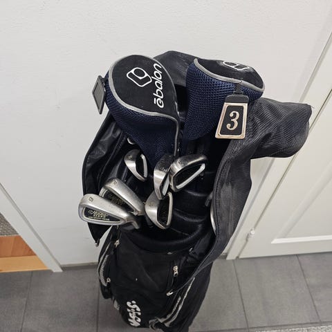 Golfmailasetti ja bägi. Settiin kuuluu useita rautamailoja (numeroituina 3–9), useita wedge-tyyppisiä mailoja sekä putteri. Mailoissa on metalliset varret ja teräksiset lavat. Mukana on ruskea golfbägi, jossa on olkahihna ja useita taskuja mailojen ja tarvikkeiden säilytykseen. Soveltuu golfharrastukseen ja harjoitteluun eri lyöntietäisyyksille.