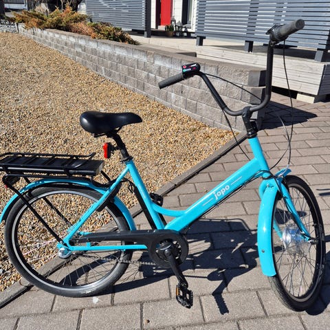 Helkama Jopo sähköpyörä 24" unisex-koossa S. Pyörässä on matala runko, joka helpottaa kyytiin nousemista, sekä 24 tuuman renkaat. Sähköavustus ohjataan ohjaustangossa olevasta yksinkertaisesta käyttöyksiköstä. Pyörässä on täyspitkät lokasuojat, takatavarateline ja seisontatuki. Unisex-malli soveltuu eri pituisille käyttäjille arkiajoon ja asiointimatkoille.