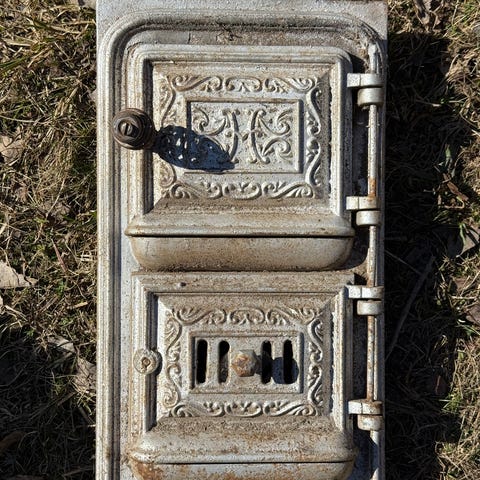 Högfors vanha rautainen uunin osa.