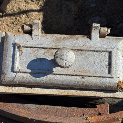 Luukku hyvässä kunnossa (ikäisekseen;), pesäosuus huonommassa, on ruostetta ja pohja perältä irrallaan.