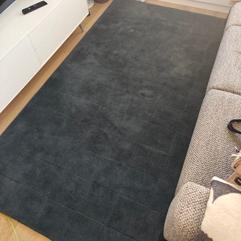 Matto on ollut käytössä kahden aikuisen kodissa, jossa ei ole ollut lemmikkejä. Mattoa on käytetty vain toiselta puolelta. Mattoa on huollettu imuroimalla ja lumipesuilla. Matossa ei ole tahroja! Kudontajälki on myös siistiä ja maton reunat ovat suorat. Siisti yksilö kaikinpuolin!
