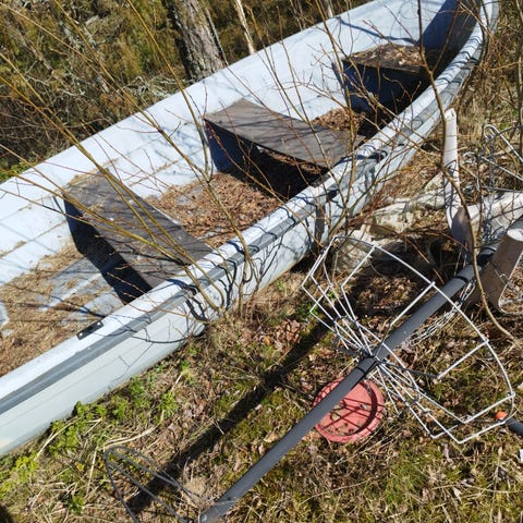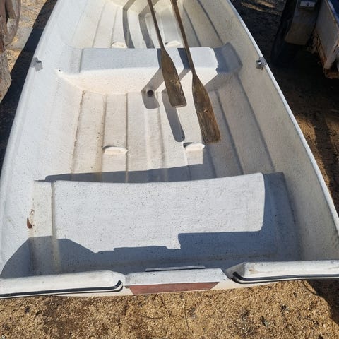 Lasikuituinen soutuvene, vaalea sisäosa ja tumma ulkopuoli. Veneessä on useampi penkki ja jalkatila, ja se soveltuu soutamiseen järvellä tai muilla suojaisilla vesialueilla. Keulassa ja perässä on kiinnityspisteet köydelle. Vene on tarkoitettu pääasiassa vapaa-ajan käyttöön, kuten kalastukseen tai lyhyille siirtymille rannikon läheisyydessä.