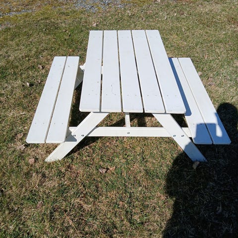 Ikea Resö lasten piknikpöytä, jossa penkit.