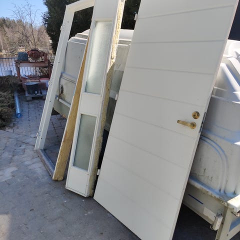 Hyvässä kunnossa oleva ulko-ovi alumiinirungolla.