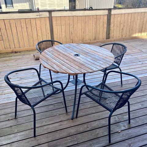 Metallinen pyöreä pöytä ja tuolit