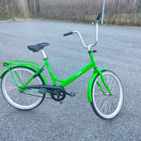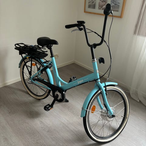 Myydään hyväkuntoinen 3-vaihteinen 24" Jopo sähköpyörä, moottori etupyörässä. Mukana tulee laturi ja nastarenkaat. Lukkoon ja akkuun kahdet avaimet. Maali hieman lohkeillut etutangosta, ja etulokasuojassa pienet jäljet, näkyy kuvista. Takavanteeseen hyvä tehdä pinnojen kiristys. Voi tulla koeajamaan.