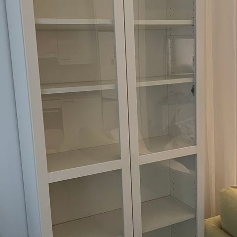 Annetaan kirjahylly. Ollut varastossa tyhjän panttina, koska ei mahdu minnekään ja varastossa on muita hyllyjä riittävästi. Hyllyissä vähän käytönjälkiä, mutta ehkä ja siisti. Alhaalla tehty listojen takia sisennykset, siitä kuva. Keskimmäinen levy kiinteä, muut säädettävissä. Lastulevyä.