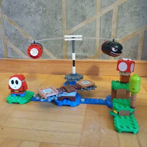 LEGO Super Mario rakennuspalikat ja hahmosetti. Mukana Bowse.Jr:n Clown car, Bob-omb ja pieni vihreä alusta koristeosalla. Sopii LEGO Super Mario -teemaan ja yhdistettäväksi muihin saman sarjan setteihin. Profiilissani on monia muita LEGO Supermario tuotteita tämän lisäksi.