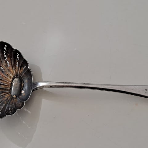 Myydään kuvan hopeiset palasokeri otin ja hienosokeri lusikka.