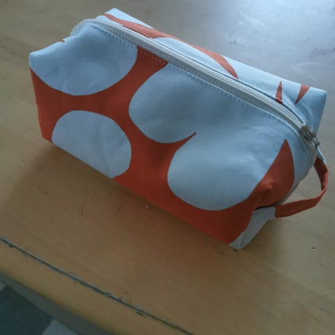 Tähän mahtuu mukavasti harja, ja muuta meikkiä, itsetehty.