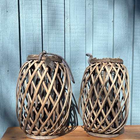 Lyhty, jossa harmaa rottinkimainen punottu ulkokuori ja sisällä irrotettava lasinen kynttiläkuppi. Lyhdyssä on köysikahva koristeena tai kantamista/ripustamista varten. Sopii esimerkiksi pöydälle tai lattialle tunnelmavalaistukseen tavalliselle kynttilälle tai tuikulle. Väri pääosin harmaa, luonnonsävyinen köysikahva.