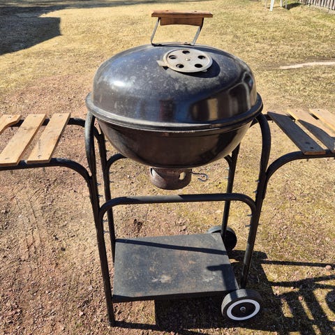 Vuoden vanha, vähälle käytölle jäänyt BBQ King hiiligrilli. Siisti ja hyvässä kunnossa. Talvella pidetty ulkovarastossa pressun alla. Lopullinen kunnon putsaus jää hakijalle. Mukaan saa prikettipussin, hiiliä ja sytytyspöntön. Vain nouto.