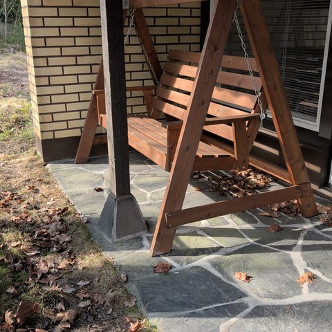Myytävänä Rintalan puinen, tukeva pihakeinu!