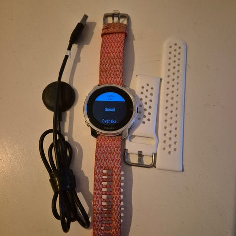 4 vuotta vanha urheilukello. Mukaan kaksi latausjohtoa. Ehjä ja siistikuntoinen.