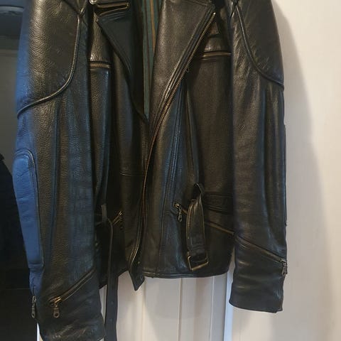 Varustelekasta ostettu takki. Laadukasta nahkaa. Maksoi uutena noin 300,-