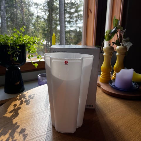 Käyttämätön Iittalan Aalto maljakko 160mm karpalo. Maljakko on alkuperäisessä laatikossa joten voit antaa hyvin esim. lahjaksi. Vain nouto.