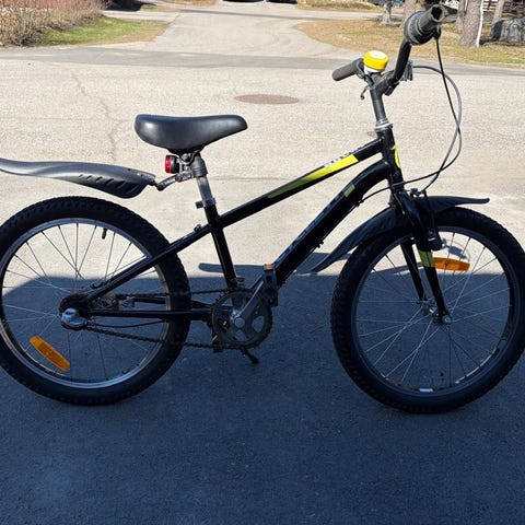 Helkama lasten polkupyörä, jossa 20" renkaat. Rungon väri on musta keltaisilla yksityiskohdilla. Pyörässä on leveät, kuvioidut renkaat, suora ohjaustanko ja satula, jonka korkeutta voi säätää. Takana on lokasuoja ja seisontatuki. Sopii lapselle, joka käyttää 20 tuuman kokoista lastenpyörää arkiajoon ja leikkimiseen. Takarengas puhki, tarvii uuden sisäkumin (n16€), ketjut tarvii öljytä, sekä takajarru tarvitsee uuden vaijerin. Runko todella hyvässä kunnossa ja muuten täysin toimiva.