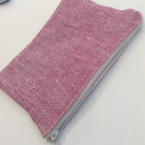 Pieni kukkaro, säilytyspussi, kaksivärinen hiekanruskea. Kangas laadukasta pellavasekoitetta. Tehty käsityönä huonekaluteollisuuden hukkapaloista. Koko noin 15x12 cm. Yksittäin 7 e, useampi edullisemmin.
