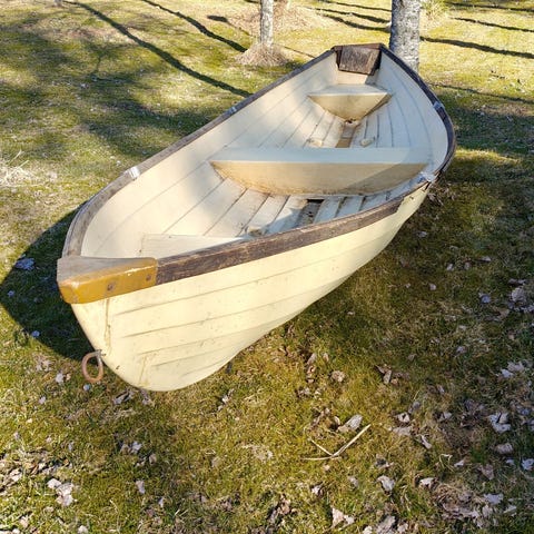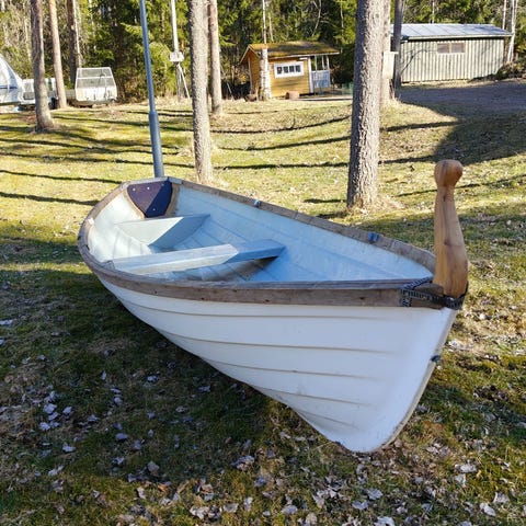Myydään tasaperäinen soutuvene, pituus 420cm ja suurin leveys 150cm Väri: ulkopuoli valkoinen, sisäpuoli vihreä kamouflace. Edellisellä omistajalla vene oli enimmäkseen sorsastuskäytössä, se on kevyt yhden mies- tai naisoletetun siirrellä. Kevyt soutaa, tasaperään helppo kiinnittää perämoottori. Mukaan uudet airot ja kaupan päälle tulee 3,5 heppainen Mercury perämoottori. Moottori jäänyt käyvänä ja toimivana seisomaan varastoon ja vaatii käynnistyäkseen sytytystulpan ja bensapuolen putsauksen. Lisäksi muutama vanhempi kelluntaliivi tulee mukaan. Kuvissa veneen sisäpuoli talven jälkeen pesemättä. Vene löytyy Hämeenlinnasta.