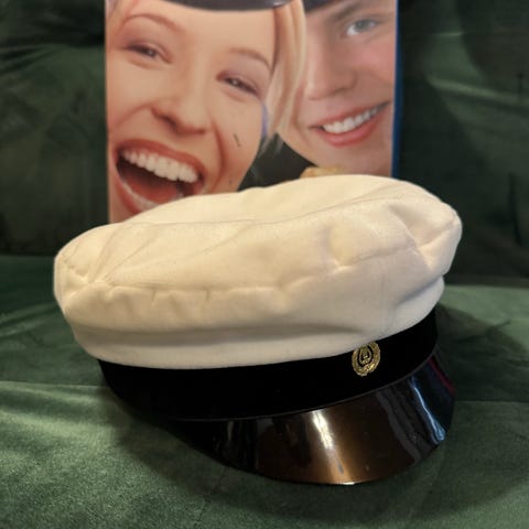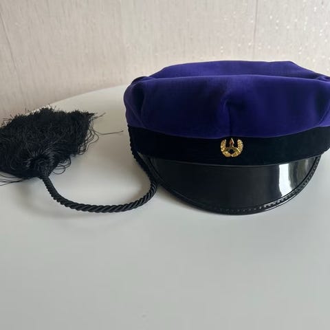 Siisti ja hyväkuntoinen merkonomilakki, koko 58. Valmistettu Suomessa. Mukana alkuperäinen laatikko, hopeinen tupsu ja merkki tallessa.